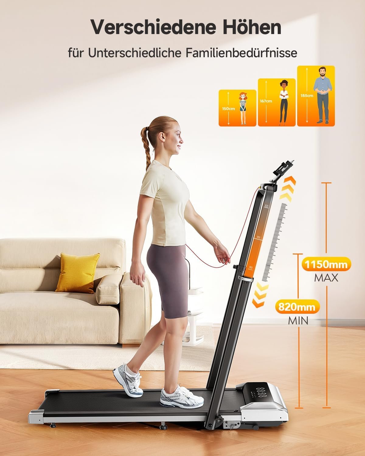 • Teleskop-Griff für die ganze Familie: Einzigartig in dieser Klasse lässt sich die Höhe des Handlaufs stufenlos von 820 mm bis 1150 mm ausziehen. Zudem ist der Winkel auf 95° oder 105° einstellbar – perfekt für ergonomisches Laufen oder sicheren Halt während der Rehabilitation.