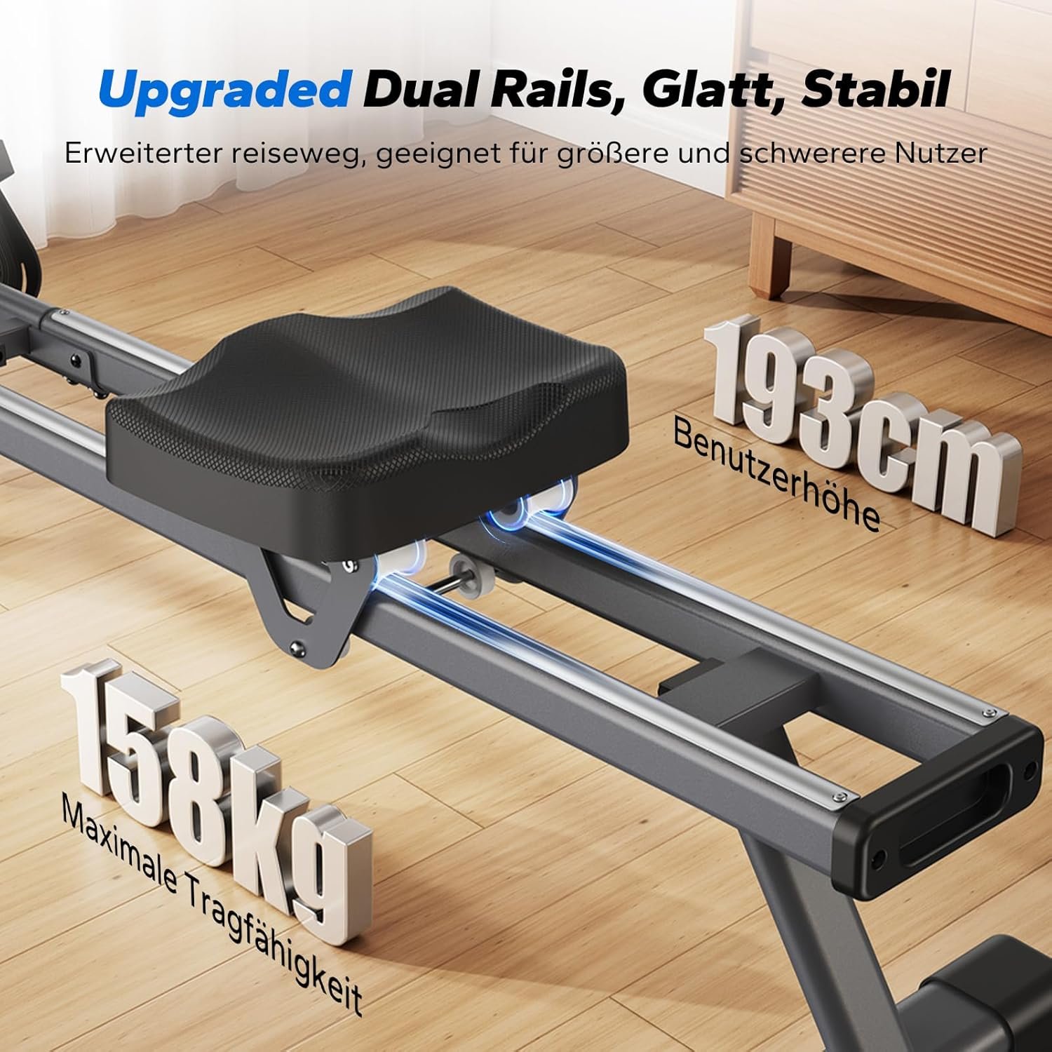 MERACH Magnet-Rudergerät | 16 Stufen, ultraleise, App-Anbindung, verbesserte Doppelschienen für hohe Stabilität, einfache Montage