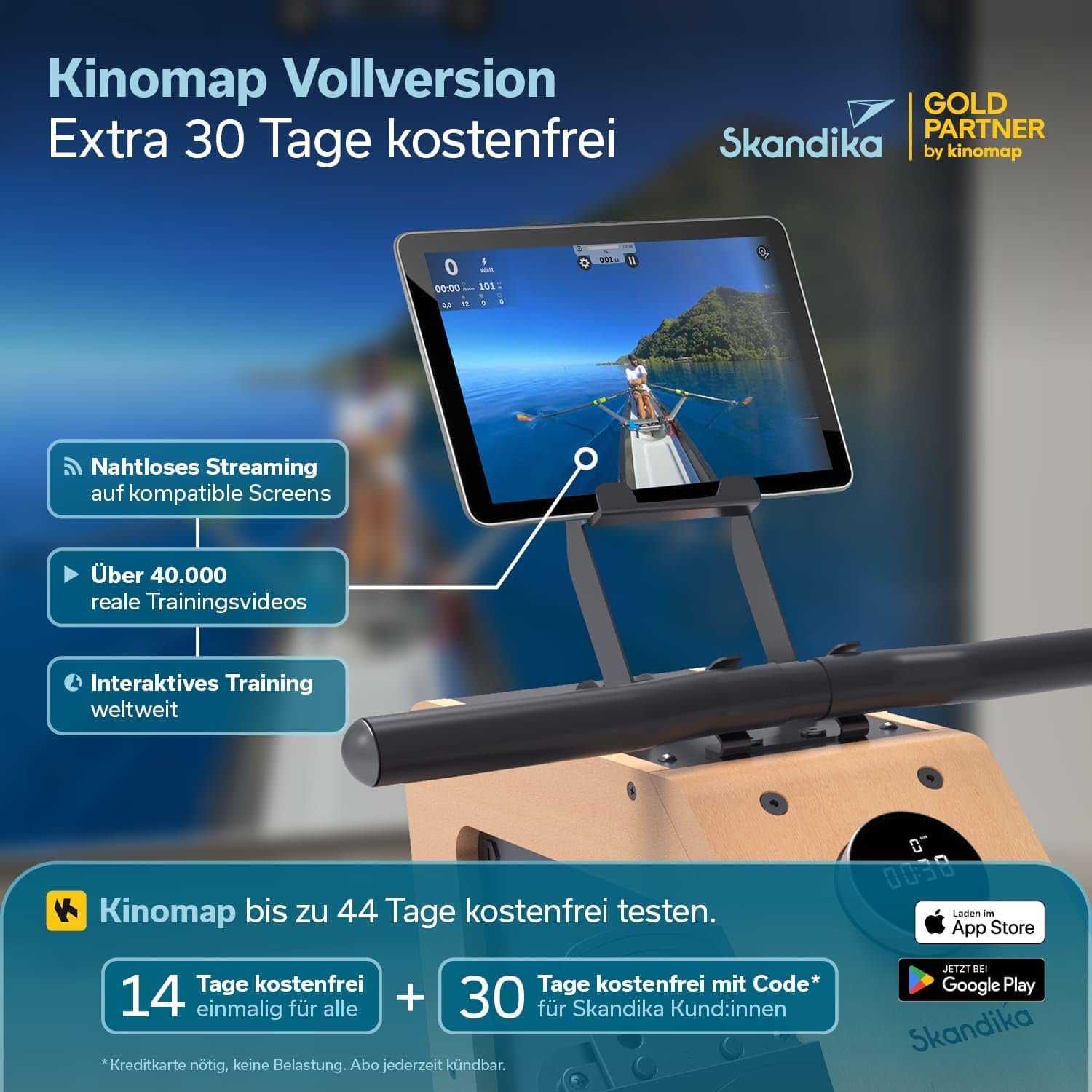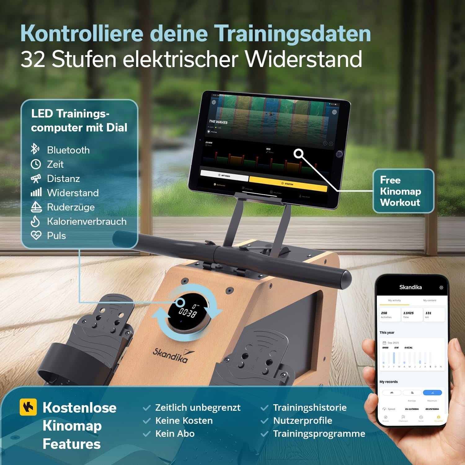 Skandika Rudergerät Torin P6-G | Echtholz, Eigenantrieb, 32 Stufen, App-kompatibel, aufstellbar, 150 kg