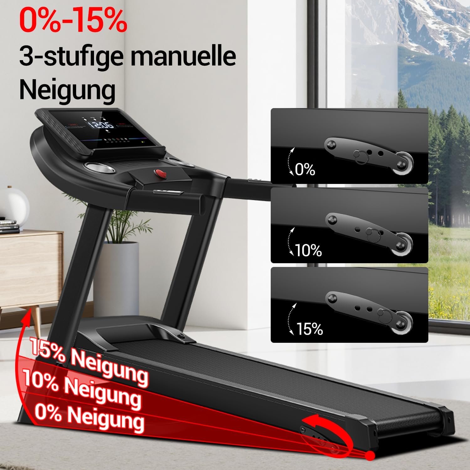 3-Stufen-Neigung für maximale Effizienz: Passen Sie die Intensität Ihres Trainings manuell an. Die verschiedenen Neigungsstufen simulieren natürliche Berglaufbewegungen, wodurch Sie den Kalorienverbrauch deutlich steigern und gleichzeitig Ihre Gelenke durch einen optimierten Laufwinkel schonen.