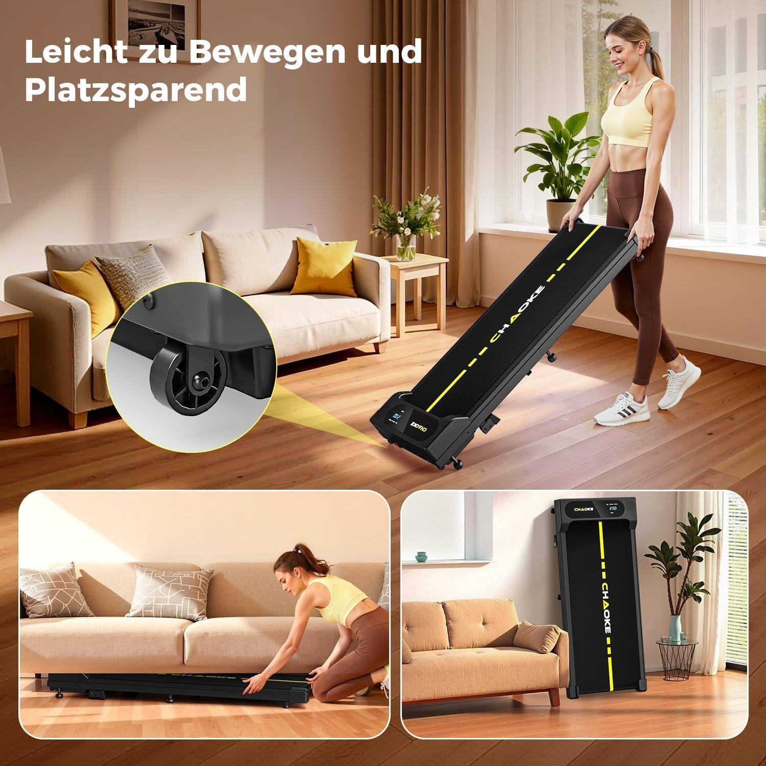 Erleben Sie maximale Flexibilität für Ihr Training zu Hause oder im Homeoffice. Das CHAOKE Walking Pad kombiniert ein extrem flaches Design mit leistungsstarker Technik. Ob intensives Bergaufgehen durch die 9 % Steigung, gemütliches Spazierengehen während der Arbeit oder leichtes Lauftraining – dieses 4-in-1-System passt sich perfekt Ihrem aktiven Lebensstil an.